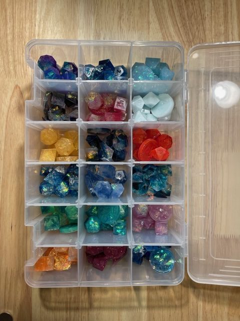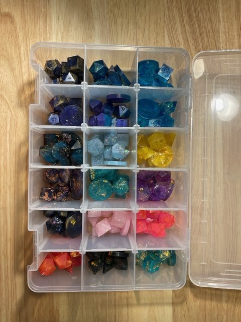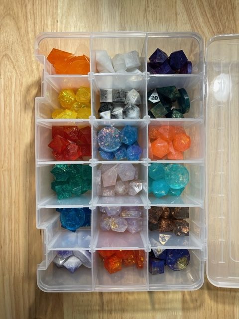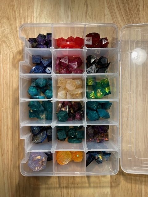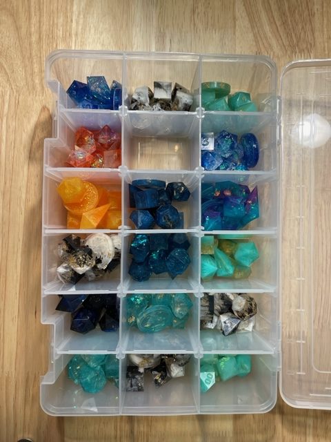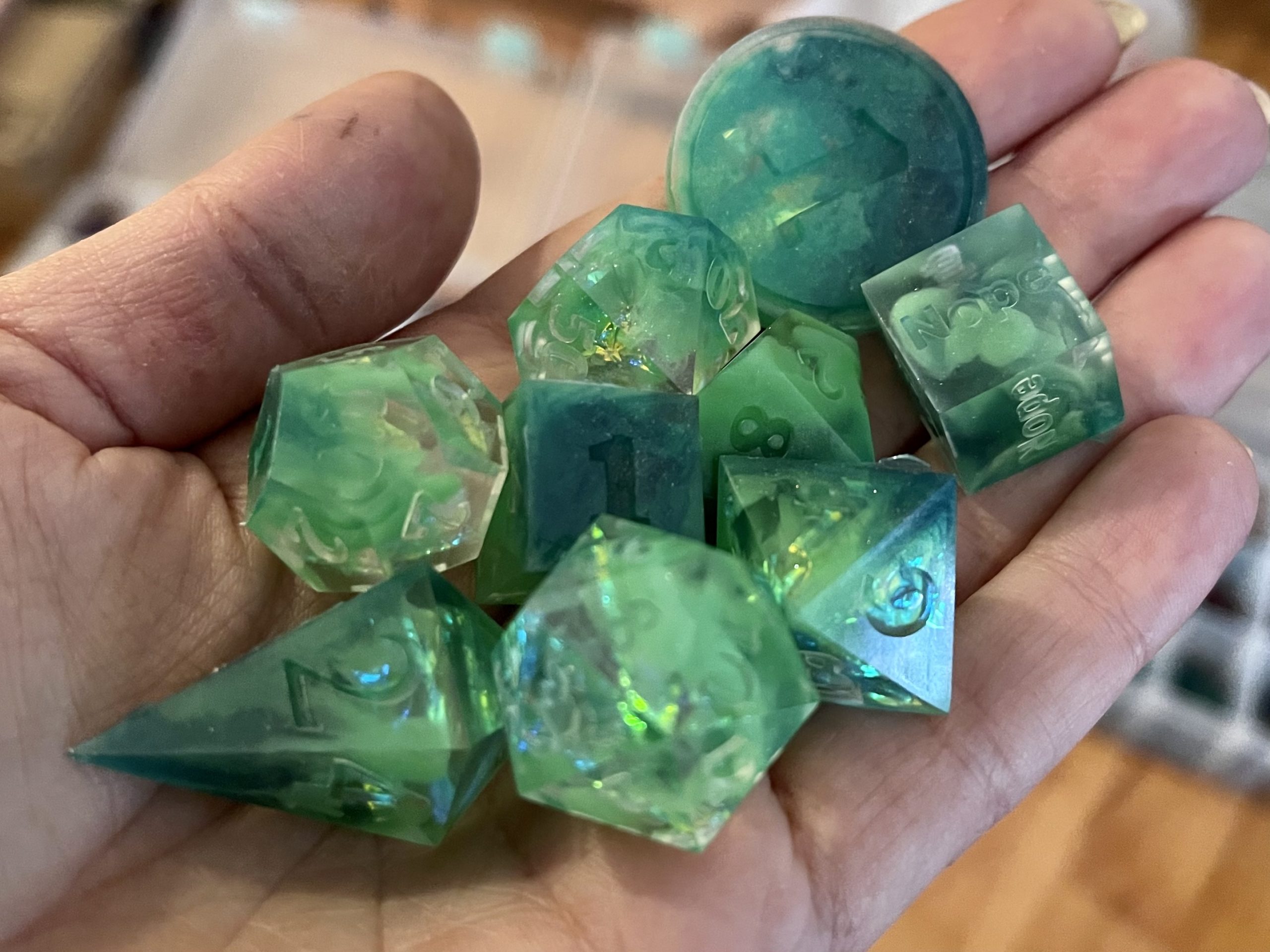 NOTE: I make and sell dice constantly, what you see in the gallery images may no longer be available. If I find that a set you have chosen has flaws beyond repair I will remake the set at no extra charge to you.
