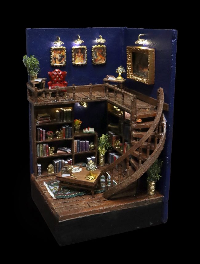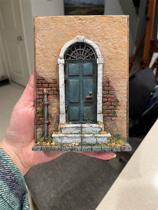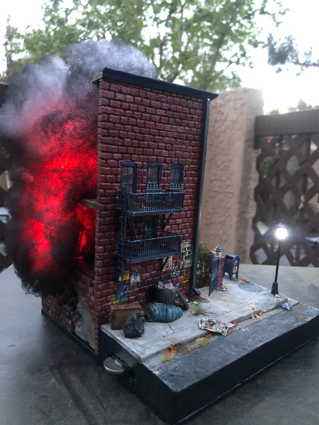 I built this piece so that the building could be removed and submitted for the competition, but is intended on living in its base for display.