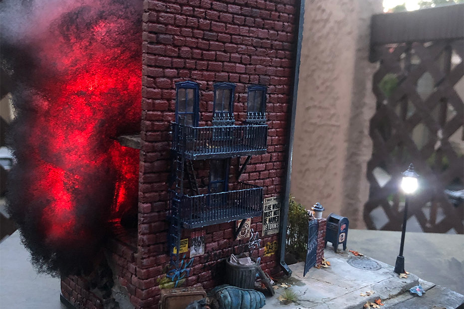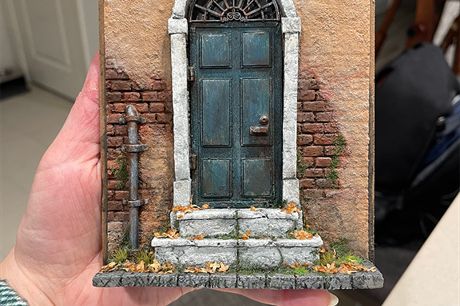 I built this piece so that the building could be removed and submitted for the competition, but is intended on living in its base for display.